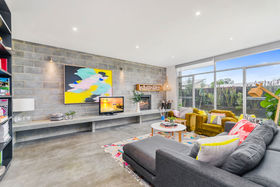 - The living room is a comfortable family domain with fireplace and full-height north facing glazing